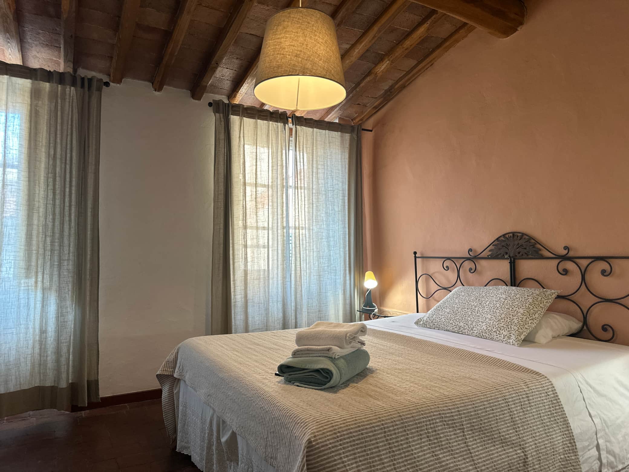 Our romantic nest offers you a stay in the historic center of the city, a few steps from the most iconic monuments where the most exciting events of the city come to life. The apartment is set in a quiet private street, dedicated to fascinating antique shops. The apartment retains the authentic Lucca character, ceilings with exposed beams and bricks, ancient terracotta flooring and two large windows in the room with a panoramic view.